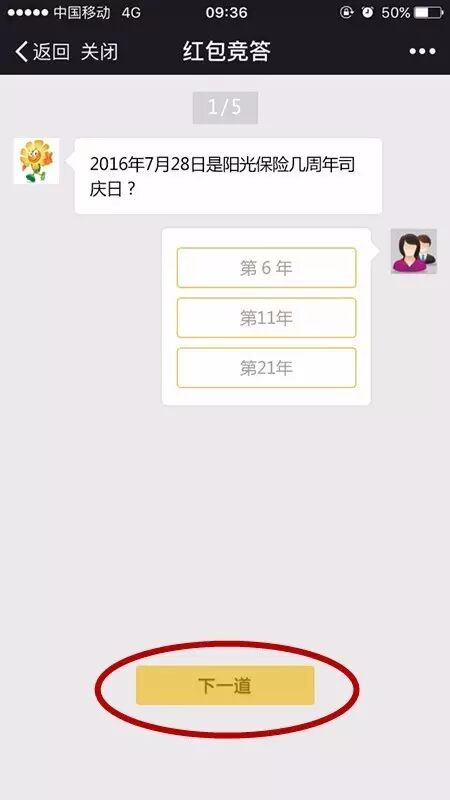 活动页面为H5页面,此案例在流畅性方面做了很大的创新,去掉了传统答题的“下一题”按钮,改为选完选项就出现第二题,让用户少了操作顺畅很多;页面的其他小细节也做了优化:题目提示、头像颜色统一,显示红包领取数量等。