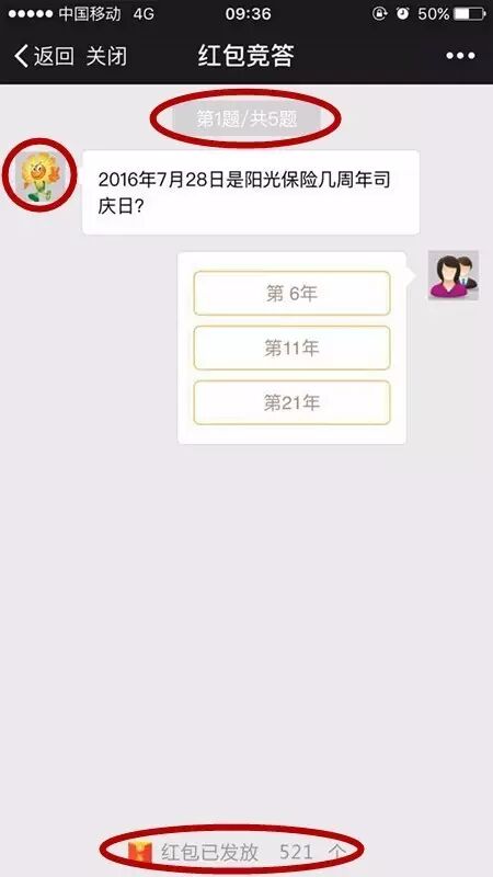 除了上文提到的分享文案,其他的文字描述也很重要。标题简单直接:xx司庆 红包竞答;图文内容:11周年与我相关的、感恩为纽带、红包与你相关,虽简短,但是该表达的都表达了,此处切忌赘述。