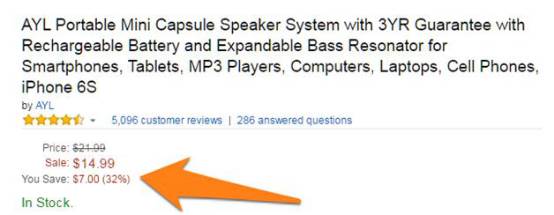如亚马逊不仅仅告诉你折扣的大小,同时还将原价、折扣价以及节省下来的金额清楚地罗列了出来。